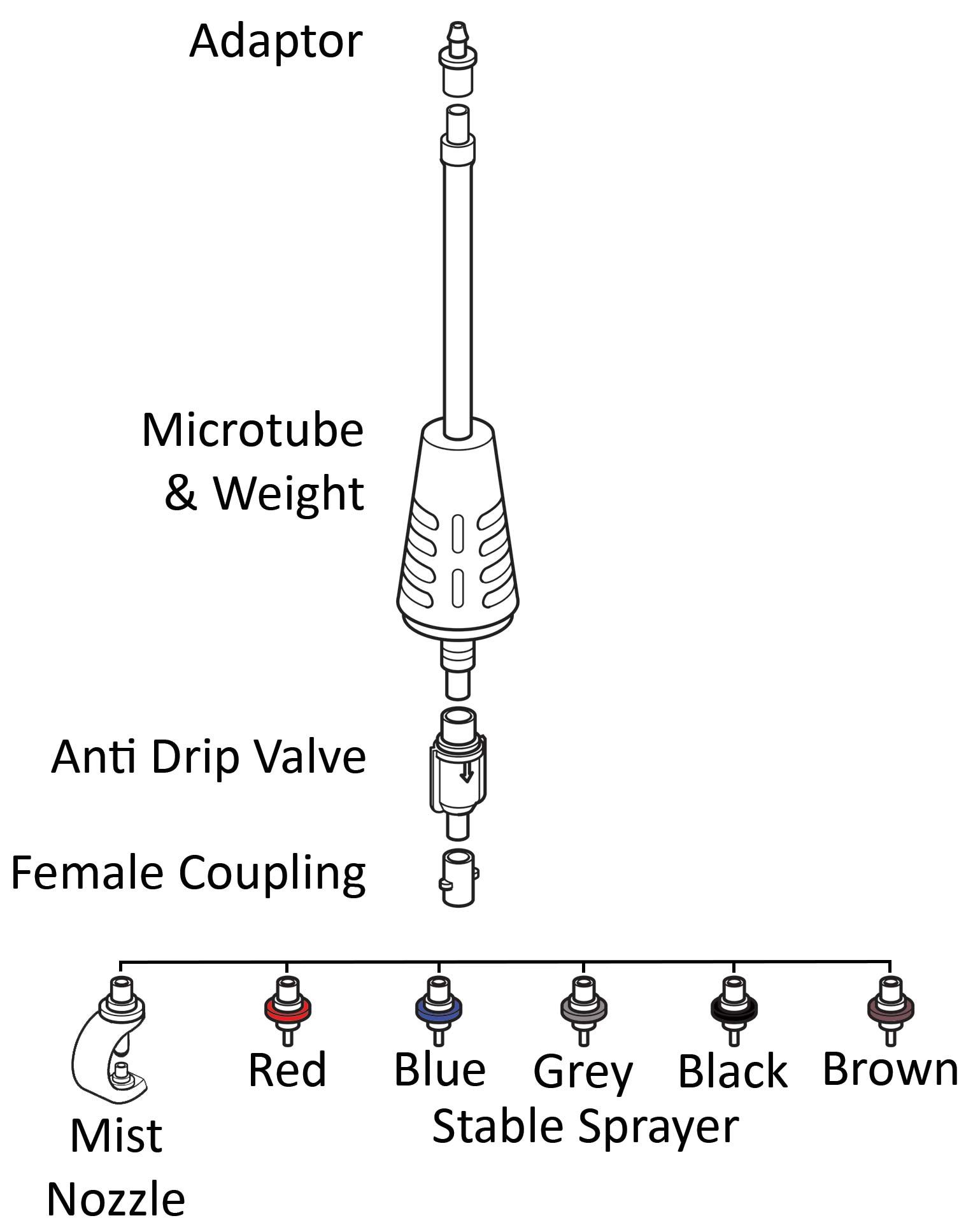 This Down Tube Sprinkler system is an excellent solution for targeted irrigation. The kit includes a sturdy adapter, micro-tube with a weighted end to keep it in place, an anti-drip valve to minimise water waste, and a female coupling to connect with your chosen spray nozzle. Just attach it to your irrigation line, add your preferred nozzle, and you're ready to go. This system allows for even water distribution across your growing area, making it ideal for delicate crops or specific watering zones. It's a reliable way to improve crop health, reduce manual watering time, and ensure consistent moisture. Perfect for both commercial and hobby growers, this setup is compatible with most standard polytunnel irrigation systems and helps create a more controlled growing environment. Individual components can be found here.